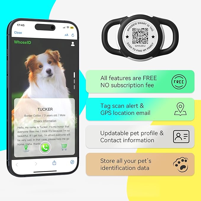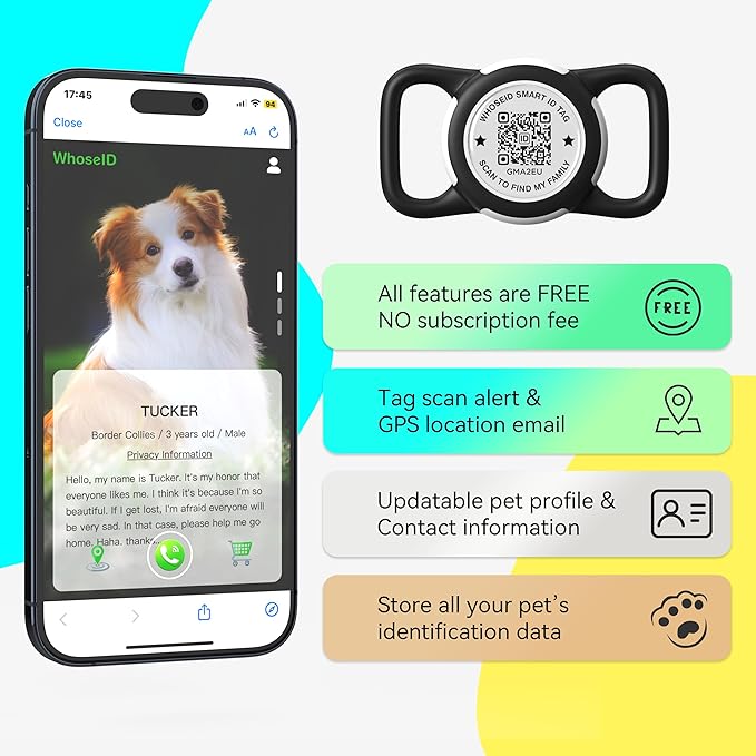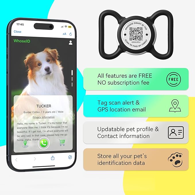 Smart Pet Tracker, Dog Tracker with Collar Holder, Smart Tag for Seamless Location Tracking, Work with Find My, Not GPS Tracker (Blue) -