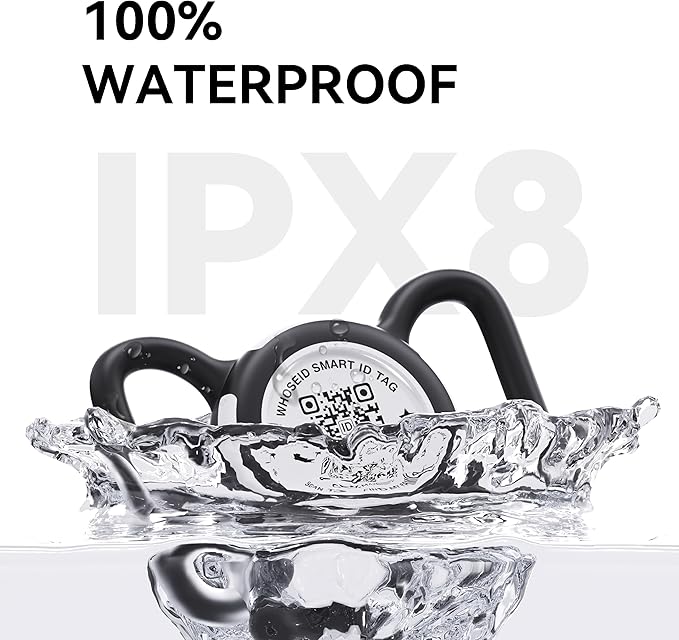 IP68 Waterpoof Dog Tag Holder, Stretchy Silicone Full Body Covered tag Holder for Dog Cat Collar Fit All Width Collar (Black & Blue, 1 Pack) -