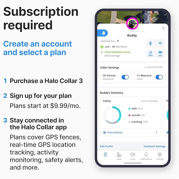 Halo Collar 3, Multifunctional GPS Wireless Dog Fence & Dog Training Collar with GPS Tracker, Subscription Required, Waterproof, Graphite (Medium/Large) -