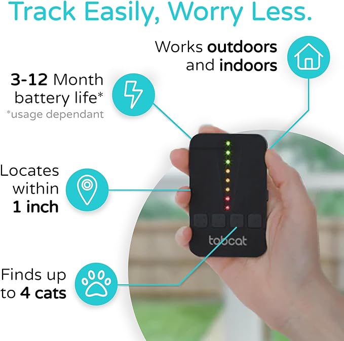 Tabcat V2 Cat & Kitten Tracker - More Accurate Than GPS - No Monthly Fee or Subscription - Includes 4 Homing Tags - Up to 500ft Range - Small & Lightweight Tags Perfect to Find Indoor & Outdoor Cats -