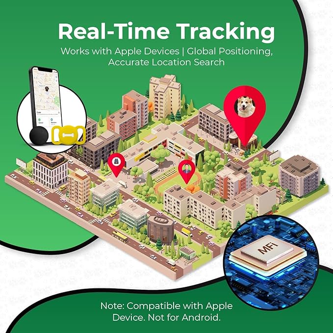 Smart Pet Tracker, Dog Tracker with Black Collar Holder, Smart Tag for Seamless Location Tracking, Work with Find My, No GPS Tracker (Black) -