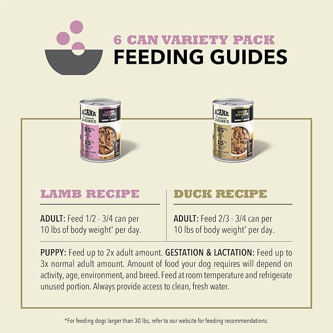 ACANA Premium Chunks in Bone Broth Grain-Free Wet Dog Food Variety Pack: Lamb + Duck Recipes 12.8oz Cans (6 Count, 3 of Each) -