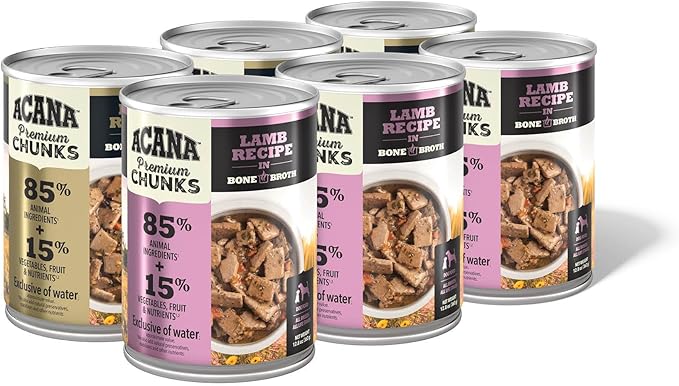 ACANA Premium Chunks in Bone Broth Grain-free Wet Dog Food Lamb Recipe 12.8oz Cans (12 Count) -