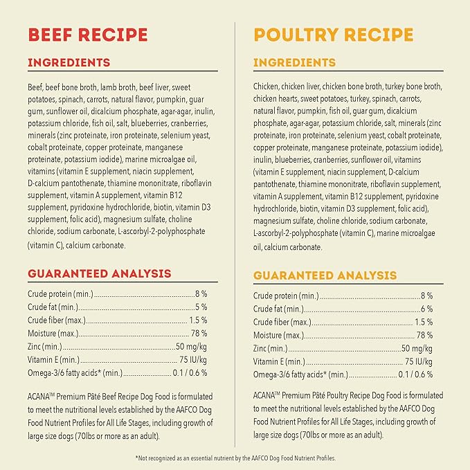 ACANA Premium Pate in Bone Broth Grain-Free Wet Dog Food Variety Pack: Beef + Poultry Recipes 12.8oz Cans (6 Count, 3 of Each) -