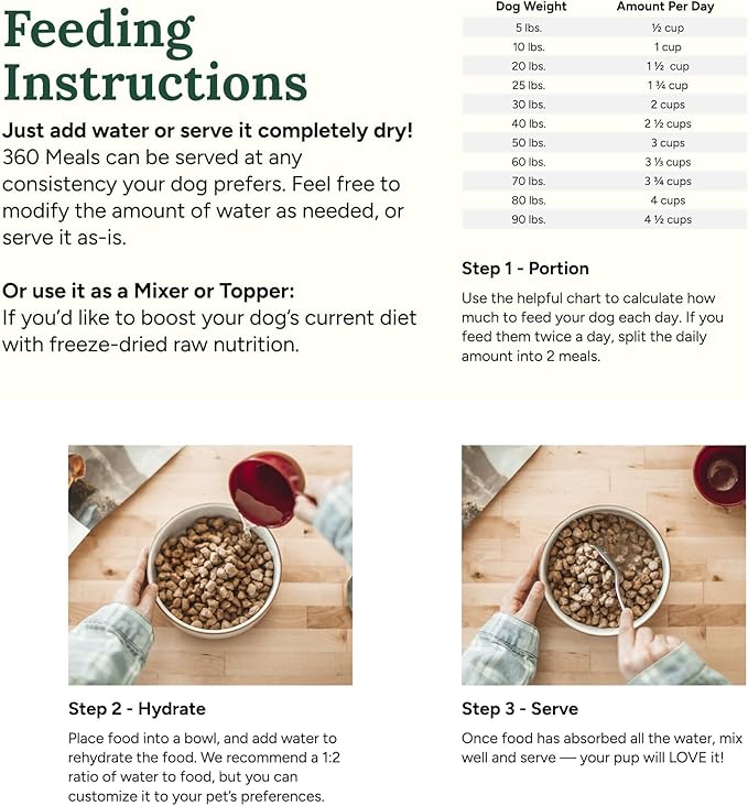 360 Pet Nutrition Freeze-Dried Raw Dog Food – Multi-Protein with Beef, Chicken, Fish, Liver & Organs, High Protein, Omega-3s, Fruits, Veggies & Superfoods, Grain-Free, No Fillers, 5 oz – Made in USA -