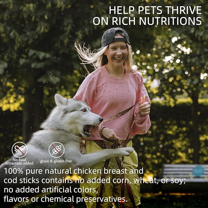 ASMPET Dog Treats Chews, Chicken Wrapped Cod Sticks, Rawhide Free & Grain Free Dog Snacks for Training Rewards (16 pcs,10.6 oz) -