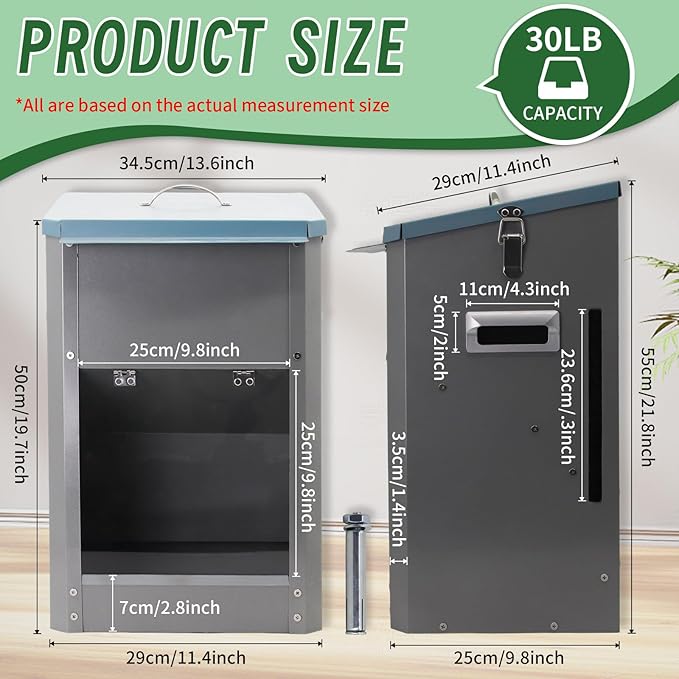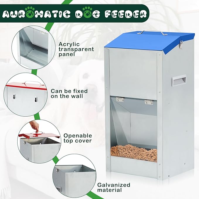 Galvanized Automatic Dog Feeder Large Breed Dog Food Dispenser for Large Dogs, 25lbs Outdoor Pets Feeder Gravity Food Feeder -