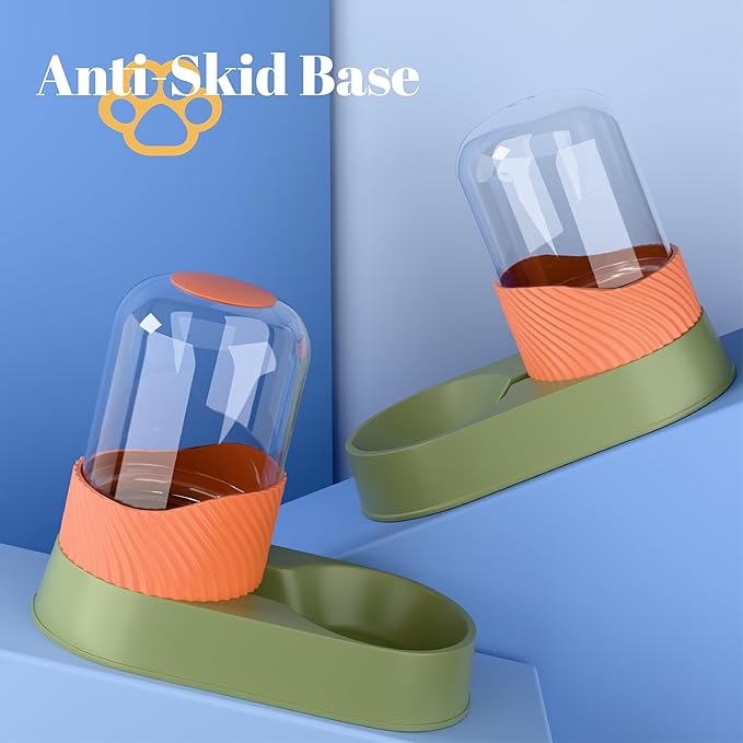 Automatic Cat Feeder and Water Dispenser 2Pcs, Dog Gravity Food Feeder and Water Bowl for Small Medium Pets Puppy Kitten, 3.5L/118.36oz Large Capacity, Easy to Clean (Orange) -