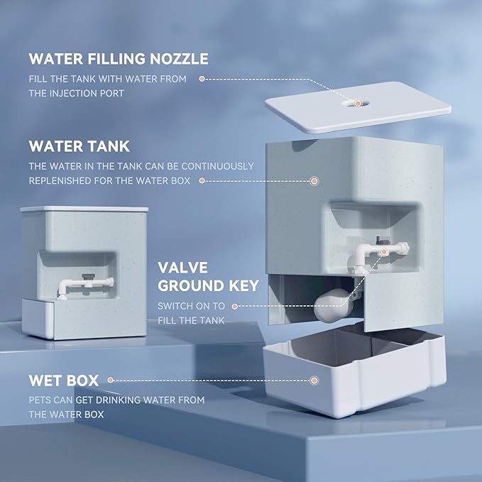 Automatic 8L Pet Waterer - Gravity Water Dispenser for Cats, Puppies, and Dogs.Prevents Dirty Water Backflow, Easy to Refill(White, Green, White) -