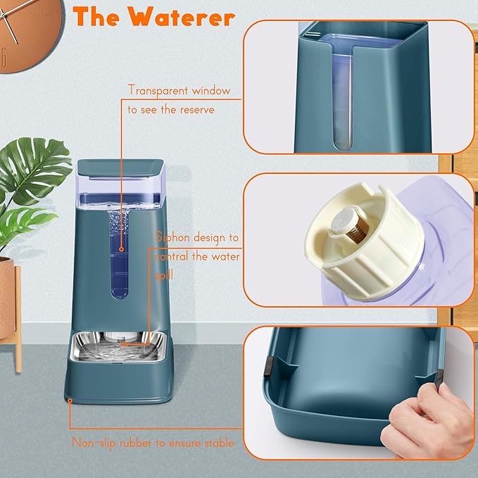 iGeekPet Care-NeverMissMeal Gravity Pet Feeder and Water Dispenser Set, Automatic Dog Feeder and Dog Water Dispenser for Dogs Cats Pets Animals Large Capacity(3.8L) -