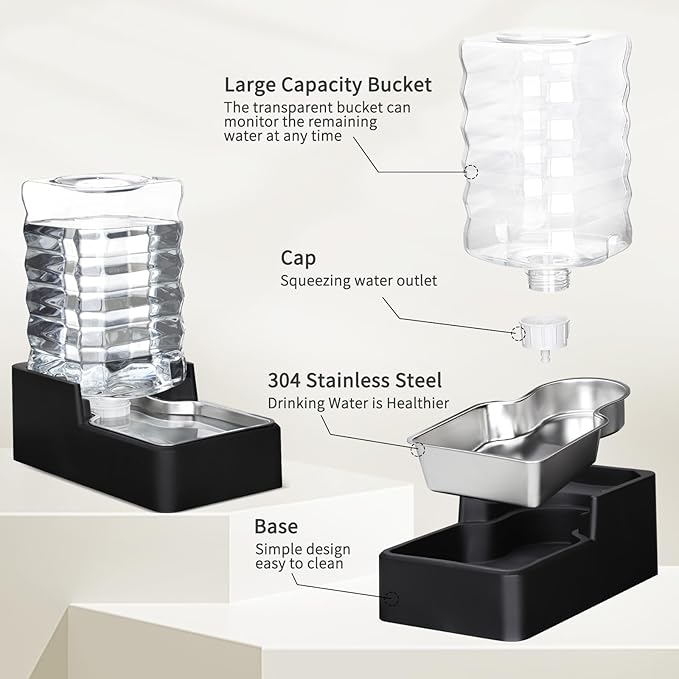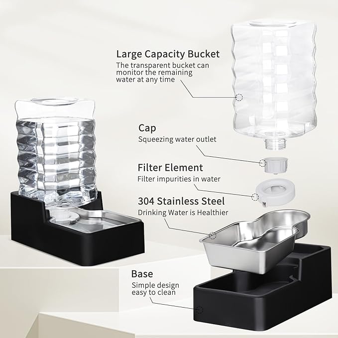 Sfozstra Gravity Water Bowl Dispenser : Automatic 5L Black Cat Stainless Steel Feeder Without Filters for Pets Indoor/Outdoor by Owners -