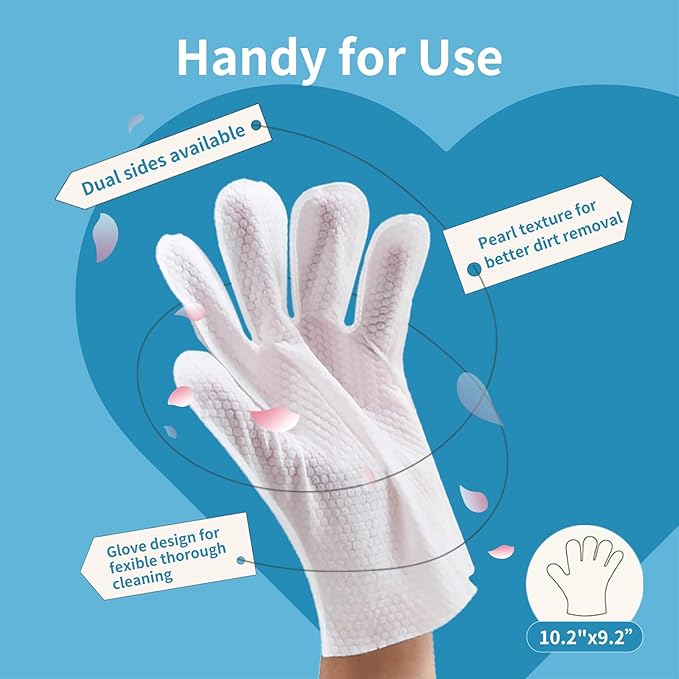 Pet Glove Wipes, Pet Grooming Gloves - for Dog Cat Hair Removal, Bathing & Deshedding, Cleaning Glove for Dog and Cat Paws, Body and Butt, Ear, Eye, Daily Care and Travel,Thickened-20PCS -