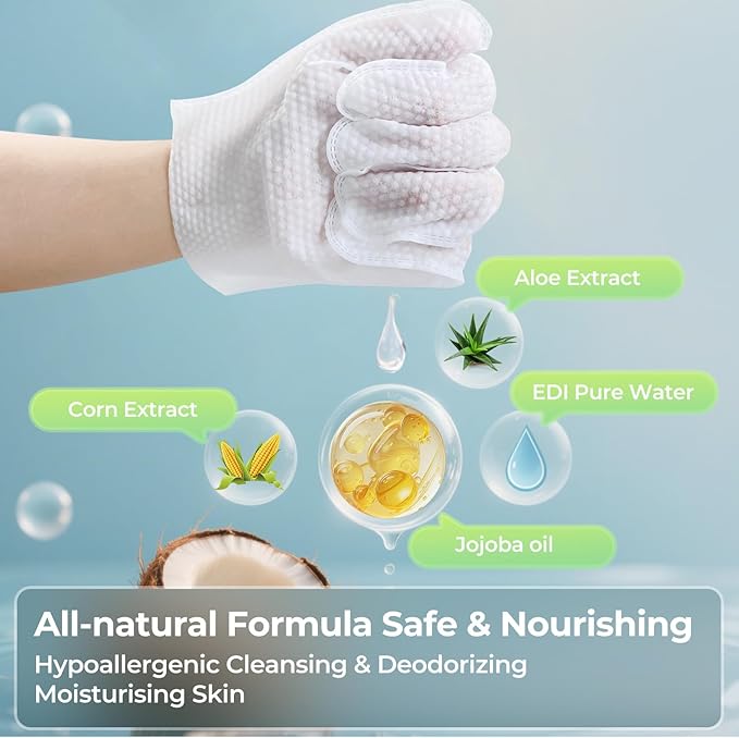 20 PCS Pet Cleaning and Deodorizing Bathing Grooming Glove Wipes for Dogs and Cats, Extra Thick Nourish Fur No-Rinse Grooming Wipes for Daily Care and Travel, Hypoallergenic -