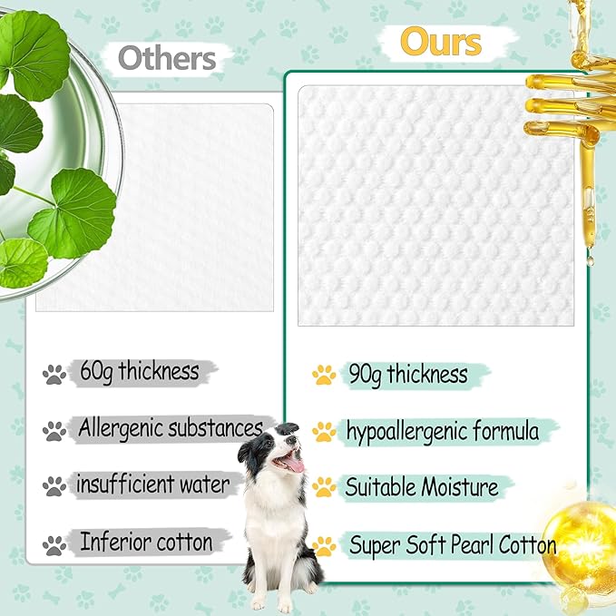 40 PCS Pet Cleaning and Deodorizing Bathing Grooming Glove Wipes for Dogs and Cats, Extra Thick Nourish Fur No-Rinse Grooming Wipes for Daily Care and Travel, Hypoallergenic -