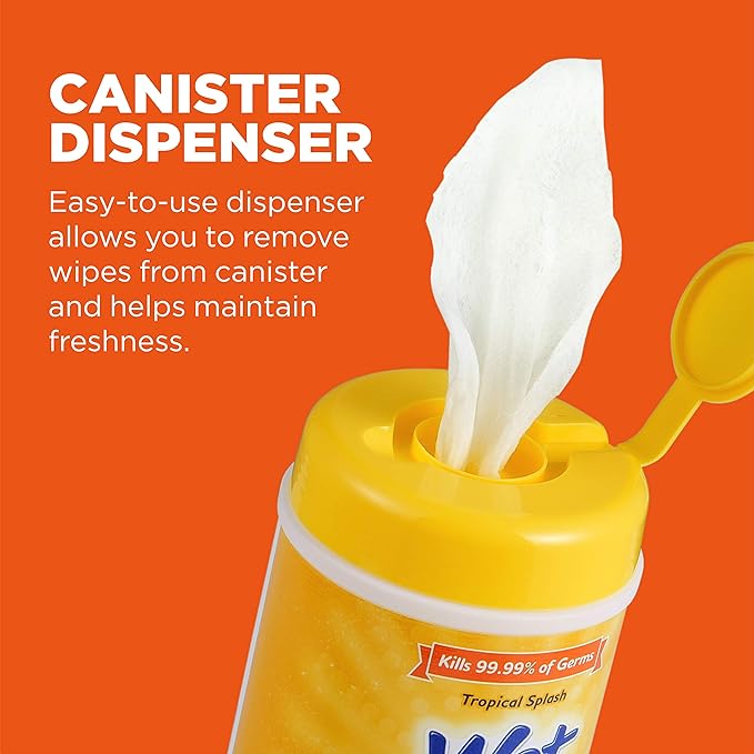 Wet Ones for Pets Multipurpose Dog Wipes with Aloe Vera, Tropical Splash Scent - Pet Bathing Wipes in Canister for Dog Paws & All Over Use, 50 Count - 3 Pack -