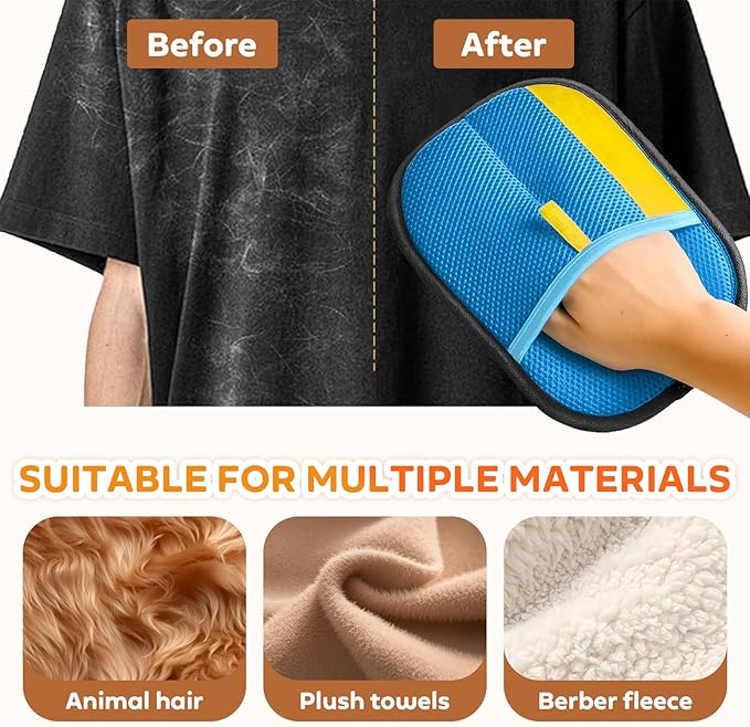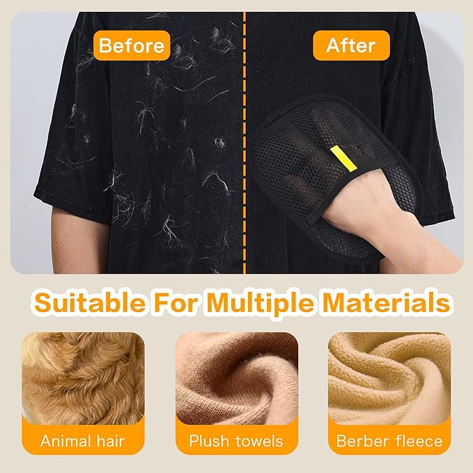 Pet Hair Remover & Pet Grooming Gloves Set - Deshedding Brush for Cats/Dogs, Reusable Lint Roller Brush for Cats,Dogs - Furniture, Car, Couch, Clothes and Bedding -