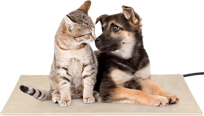 K&H Pet Products Heated Thermo-Kitty Mat, Indoor Heated Cat Bed, Pet Heat Pad for Indoor Cats and Small Dogs, Cat Heating Pad, Electric Thermal Warming Cat Bed Mat, Mocha/Tan 12.5 X 25 Inches -
