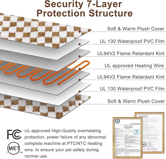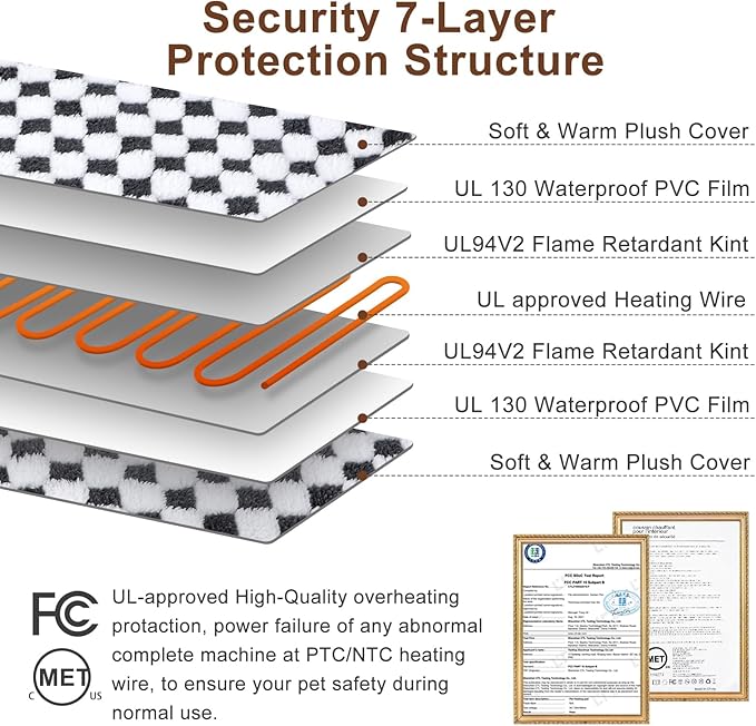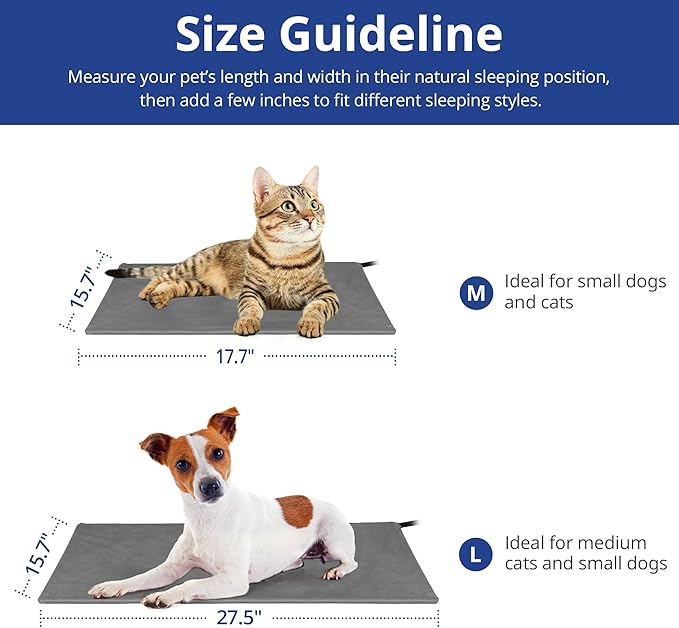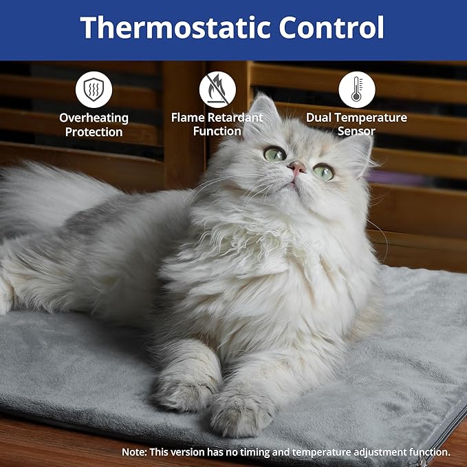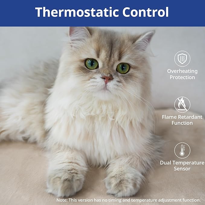 INVENHO Heated Cat Bed, Waterproof Adjustable Temperature Dog Cat Heating Pad with Timer, Indoor Pet Heating Pad for Cats Dogs Electric Pads for Dogs Cats, Pet Heated Pad (S: 18" x 16") -