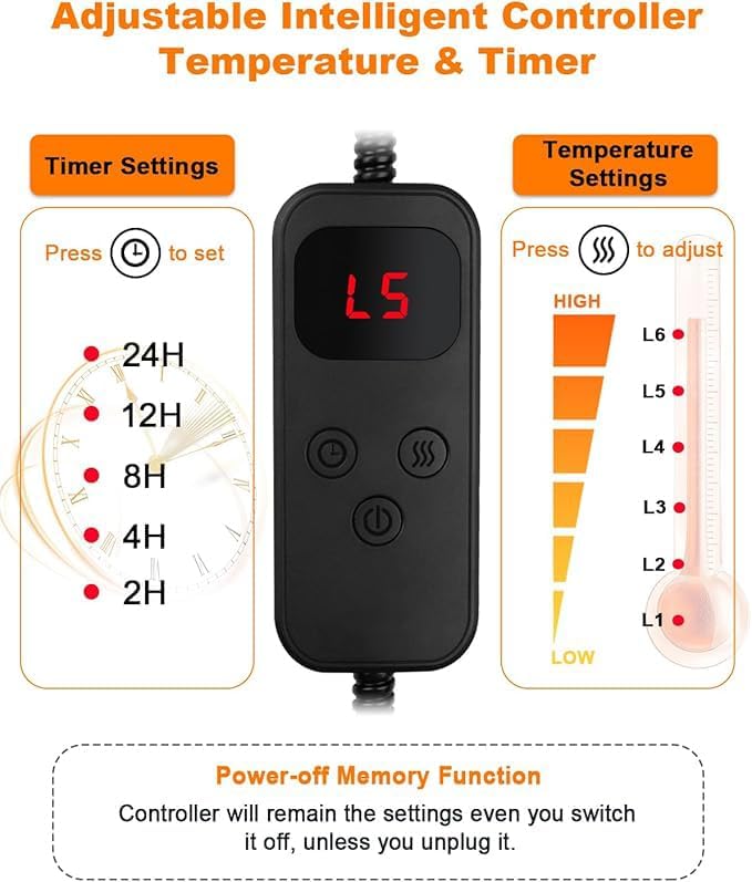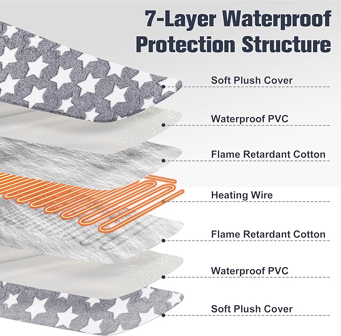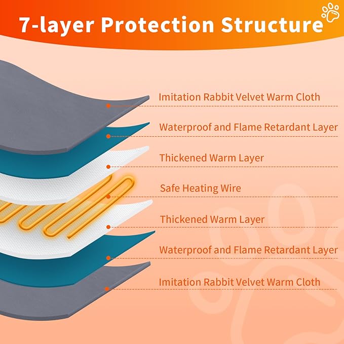 Pet Heating Pad for Cats Dogs with Timer Temperature Adjustable, Electric Heating Mat Indoor, Adjustable Warming Mat, Waterproof Heated Bed with Chew Resistant Steel Cord,Pet Heated Mat -