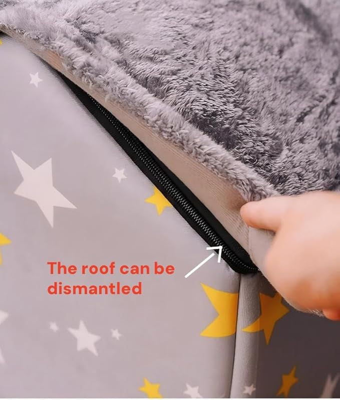 Scnbom Dog House Indoor Puppy Cave Cat Nest Kennel Pet Bed Portable Memory Sponge Foldable Houses with Cushion (Grey, L:Size fits 14kg/30lbs (Pets)) -