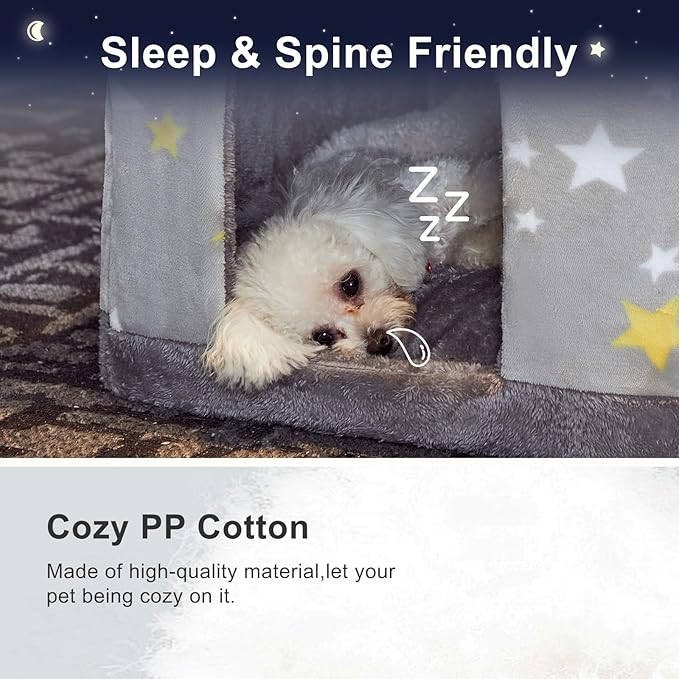 Scnbom Dog House Indoor Puppy Cave Cat Nest Kennel Pet Bed Portable Memory Sponge Foldable Houses with Cushion (Grey, S:Size fits 3.5kg/8lbs (Pets)) -