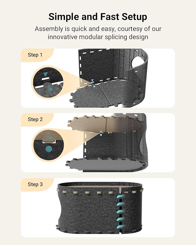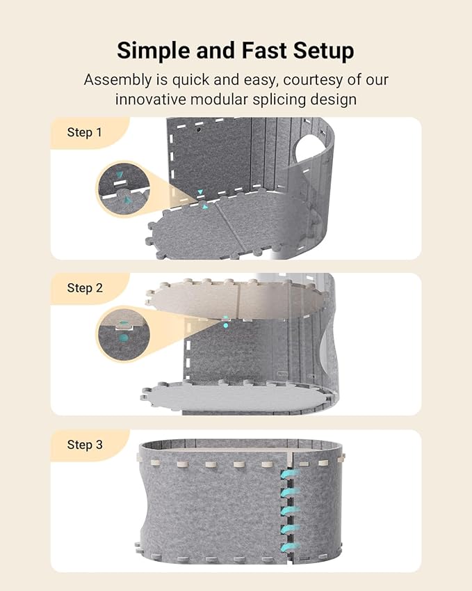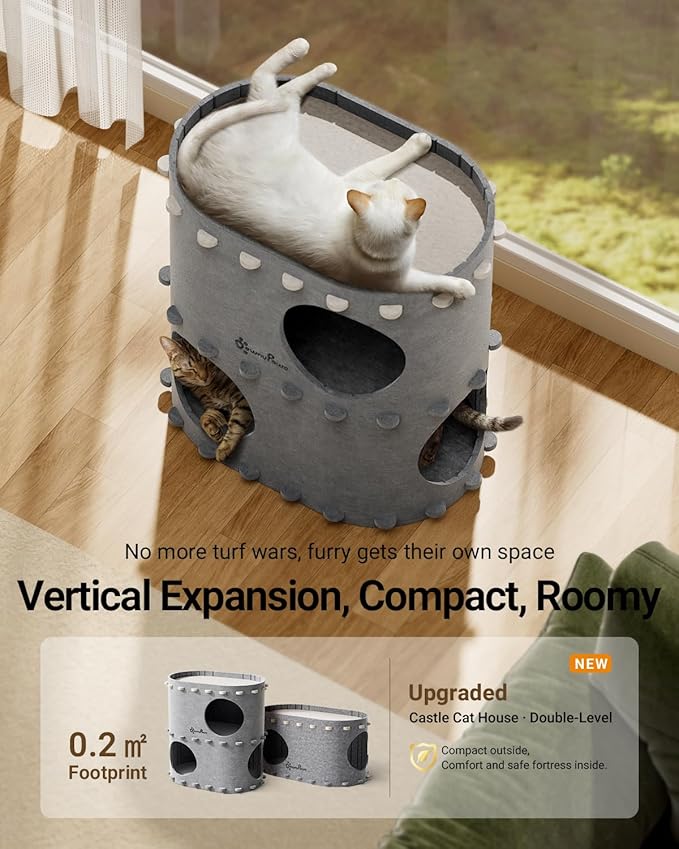 DownyPaws Cat House for Indoor Cats, 2-Storey Foldable Cat Bed Cave, Felt Cats Tunnel Bed Condo, Castle Kitten Cube Hideaway for Multicats, Scratch Resistant, Light Gray -
