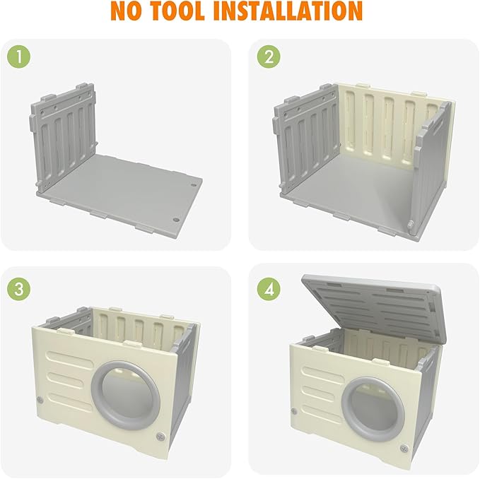 Plastic Cat House for Outdoor Indoor, Waterproof Outdoor Cat House with Escape Door for Feral Cats Outside Cat Shelter for Small Pet, Spacious, Assemble Easily -Grey -