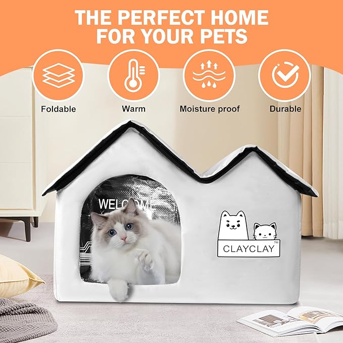 Heated Cat House for Outside Pets in Winter,Winter Shelter for Indoor Outdoor Ferals,Cats & Small Dogs with Heating Pad,Kitty Heated House with Waterproof Suitable for All Seasons(21"D x 15"W x 17"H) -