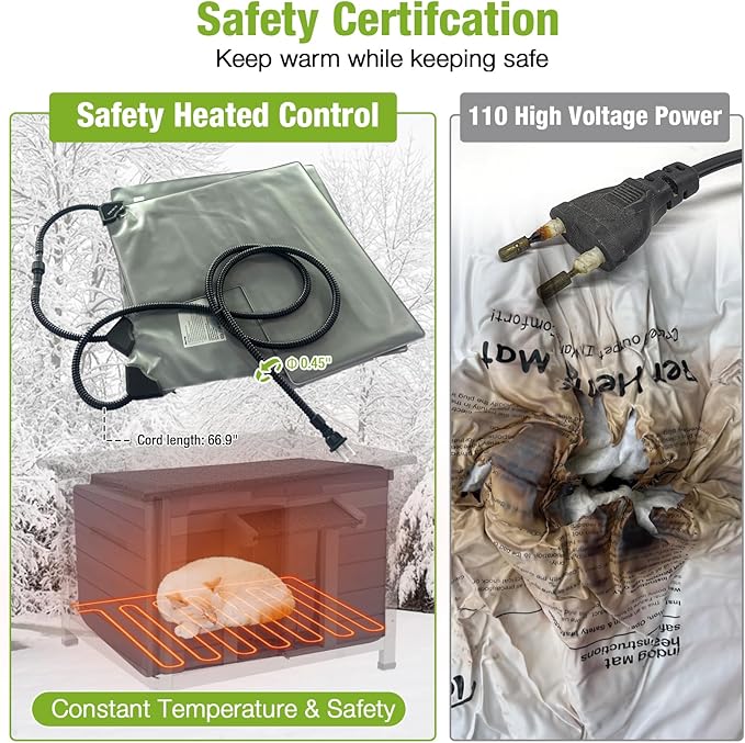 Heated Cat House for Outside Pets in Winter,Winter Shelter for Indoor Outdoor Ferals,Cats & Small Dogs with Heating Pad,Kitty Heated House with Waterproof Suitable for All Seasons(28"D x 17"W x 18"H) -