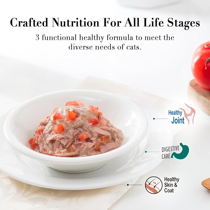 CHÉRIE Complete & Balanced Diet Series Wet Cat Food in Gravy Seafood Variety Pack, Tuna Entree with Natural Vegetables for Skin, Joint, Stomach, Urinary Tract Health, Grain-Free, 24 Pack, 2.8 oz. Can