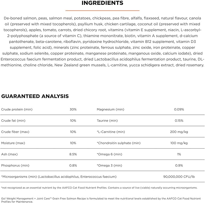 Go! Solutions Weight Management + Joint Care, Grain-Free Dry Cat Food, Salmon Recipe, 3 lb Bag -