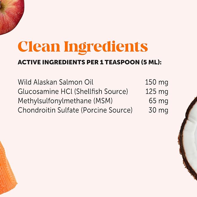 Dog Joint Supplement with Salmon Oil for Dogs - Ease Stiffness, Reduce Discomfort & Support Joint Mobility Liquid Supplement, Dog Food Topper Bone Broth with Glucosamine for Dogs (12 oz) -