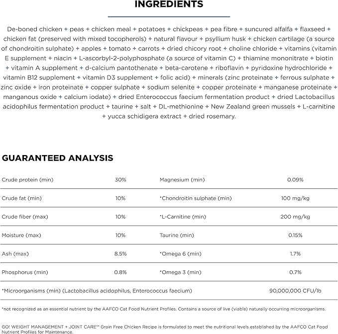 Go! Solutions Weight Management + Joint Care, Grain-Free Dry Cat Food, Chicken Recipe, 3 lb Bag -