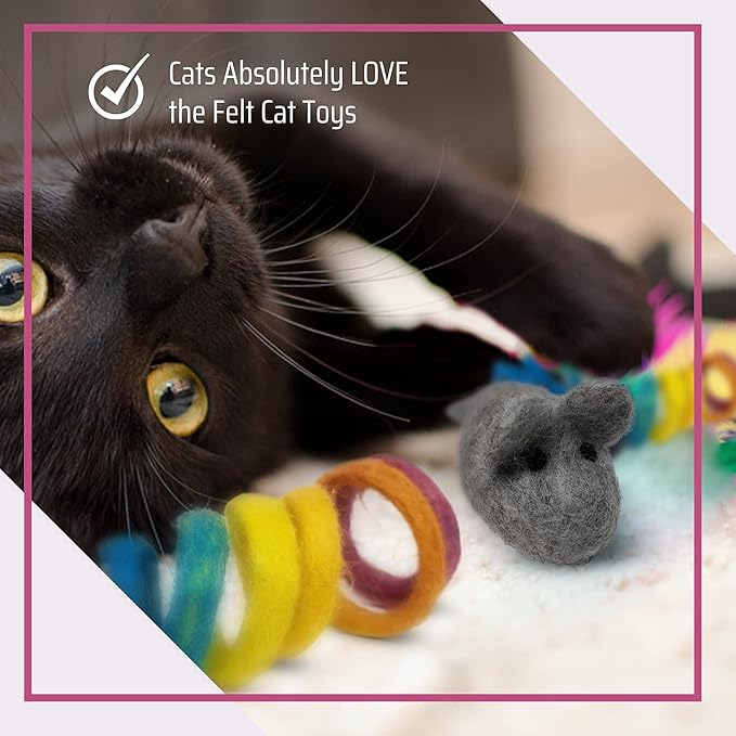 Dragonfly Creek Wool Cat Mat -Fair Trade and Eco Friendly Wool Cat Bed with Felted Wool Cat Toys- Multipurpose Cat Sleeping Bed for Playtime and Napping- Soft and Cozy Felt Cat Cushion -