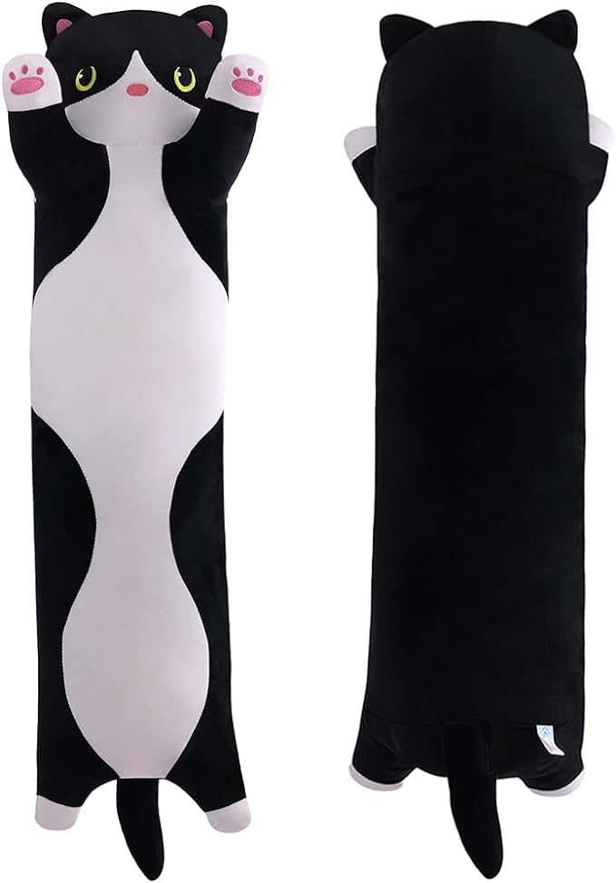 Long Plush Cat Toy Pillow Stuffed Animal Cat Kids Plush Toy Pillow for Kids and Girls Toy Doll (Black&White,50cm/19.7in) -