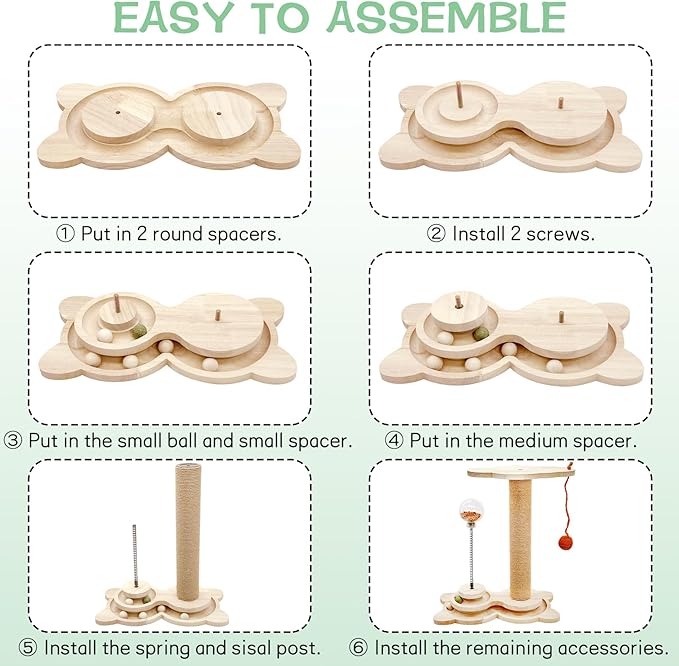 Made4Pets Cat Scratching Post Premium Sisal Cat Scratcher Kitten Toys for Indoor Kittens 28.3" Tall Cat Tower Scratch Post Cat Tree Wooden Interactive Ball Track Cat Toy with Hanging Ball, Beige -
