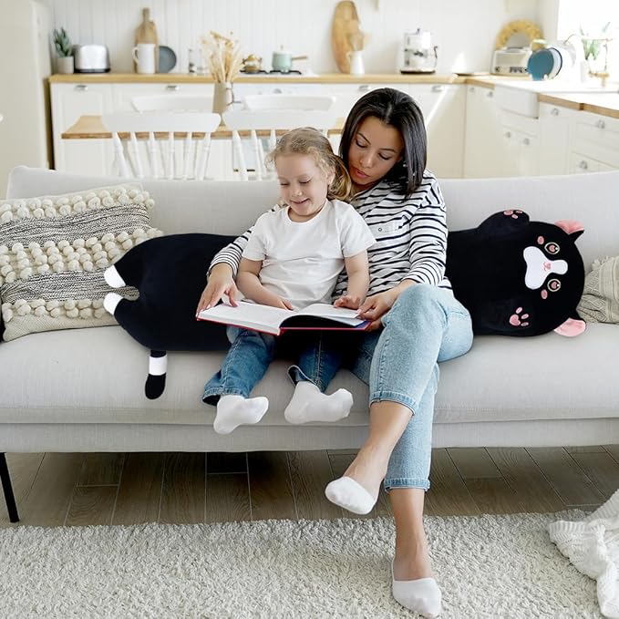 Long Plush Black Cat Toy Kids Plush Toy Pillow Hugging Pillow Cute Plush Cat Stuffed Animal Toy Gift for Kids(Black, 50cm/19.6in) -