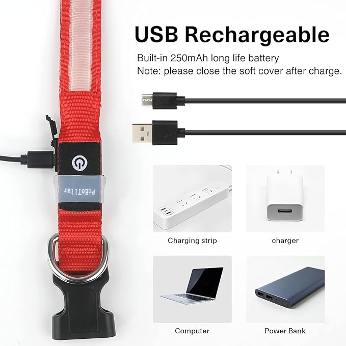 PcEoTllar Light up Dog Collar for Night Walking - LED Dog Collar Light Rechargeable Color Changing, Glow in The Dark Dog Collars Waterproof Glowing Dog Collars for Large Small Medium Dogs -