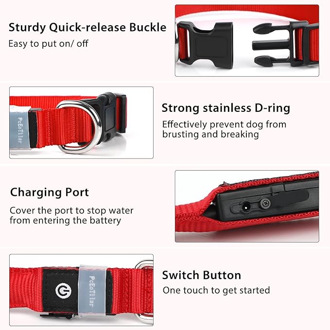 LED Dog Collar, Light Up Dog Collar USB Rechargeable, Brightest Dog Lights for Night Walking, Adjustable Dog Collar Light for Dog Safety(Large, Ruby Red) -