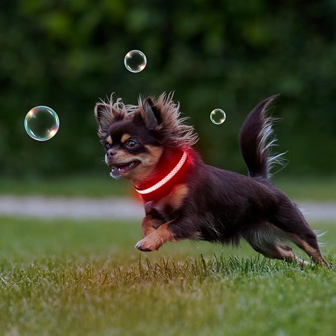 Flashseen LED Dog Collar, Light Up Dog Collar USB Rechargeable, Brightest Dog Lights for Night Walking, Adjustable Dog Collar Light for Dog Safety(Small, Ruby Red) -