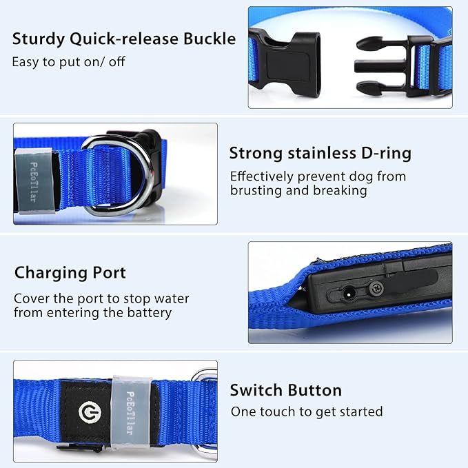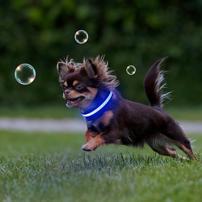 LED Dog Collar, Light Up Dog Collar USB Rechargeable, Brightest Dog Lights for Night Walking, Adjustable Dog Collar Light for Dog Safety(Small, Royal Blue) -