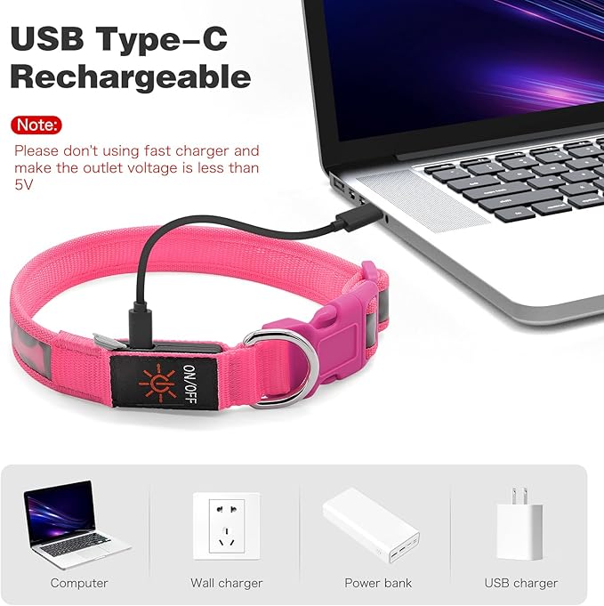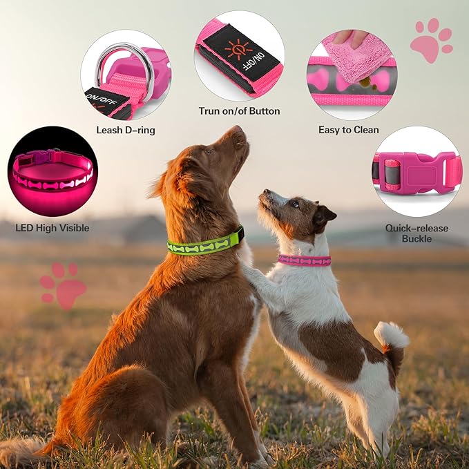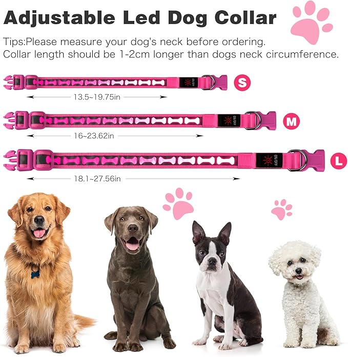 Flashseen Light Up Dog Collars, Adjustable LED Dog Collar Rechargeable, Glow in The Dark Dog Collars Super Bright Glow Collars for Night Walking for Dogs (Pink, Medium) -