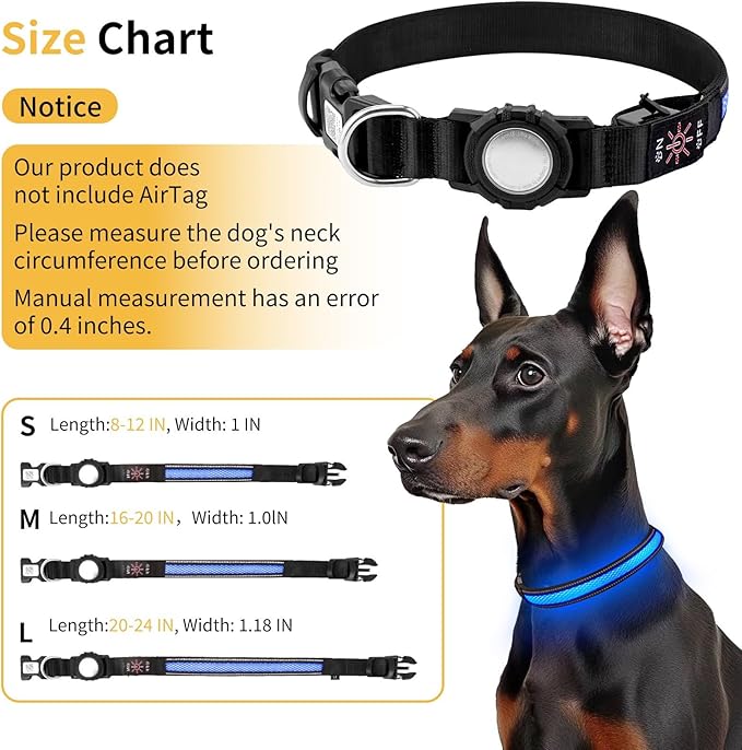 Upgraded Air Tracker Tags Dogew Collar with QR Code & LED Light, IP68 Waterproof Rechargeable Pet Collar with Reflective Strips, Heavy Duty Dog Collars for Small/Medium/Large Dogs (Blue, M(16-20 in)) -