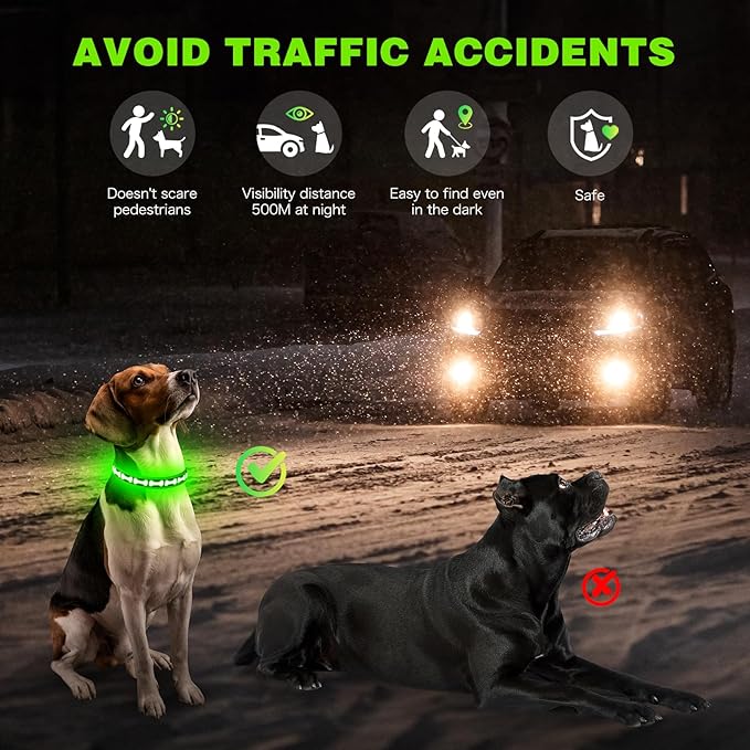 Lighted Dog Collar, Rechargeable 7 Colors Changing Light Up Dog Collar, IP67 Waterproof LED Collar Glow in The Dark, Make Pet Visible and Safety for Night Walking,Outdoor, for All Dogs -