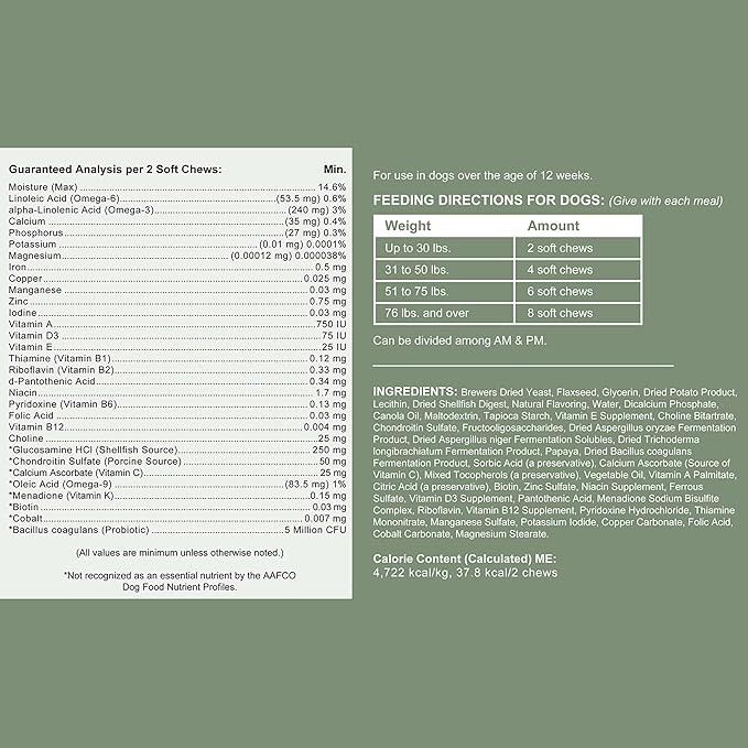 All in 1 Dog Vitamins and Supplements, 120 Soft Chew Multivitamins with Glucosamine, Probiotics, Omega Fish Oil -for Skin, Coat, Hip, Joint & Gut Health -Senior, Puppy, Large & Small Dogs -