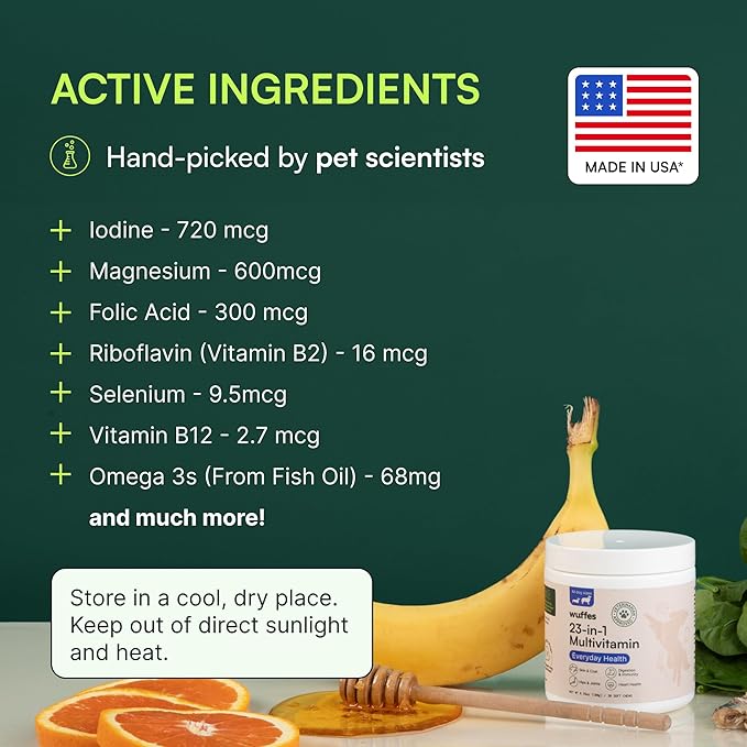 Wuffes 23-in-1 Dog Multivitamin Supplement for Hip & Joint, Skin & Coat and Immune System Support with Omega 3, Iron, Zinc, Vitamin C - Minerals & Vitamins for Senior Dogs and Puppies - 30 Soft Chews -
