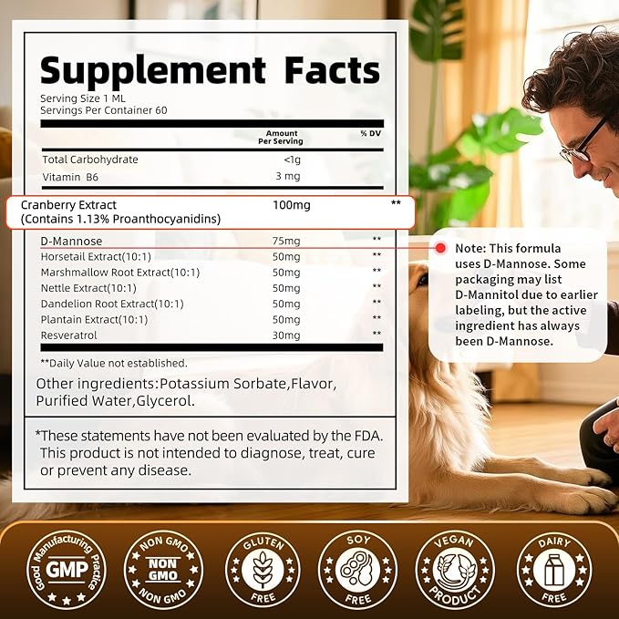 Dog UTI Treatment & Urinary Tract Support – Natural Herbal Drops with High Cranberry Extract, Vitamin B6 for Urine pH Balance, Bladder & Kidney Function, Split Dropper, Bacon Flavor, 2Oz -