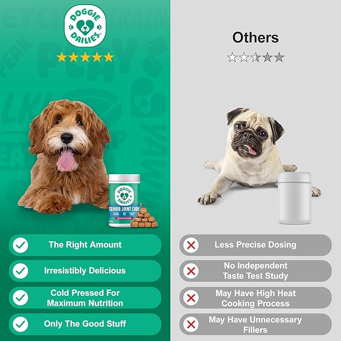 Doggie Dailies, Advanced Senior Hip and Joint Supplement for Dogs, Glucosamine Chondroitin, Premium Hip and Joint Chews for Dogs All Breeds & Sizes, Dog Vitamins and Supplements, (Duck) 120 Chews -