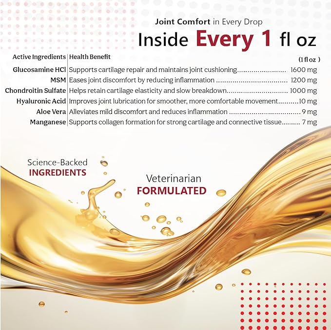 Liquid for Dogs - Vitamins, Minerals, Antioxidants - Glucosamine, Chondroitin - Beef Flavor - Maximum Joint Health Supplement for Dogs - 32 fl oz -