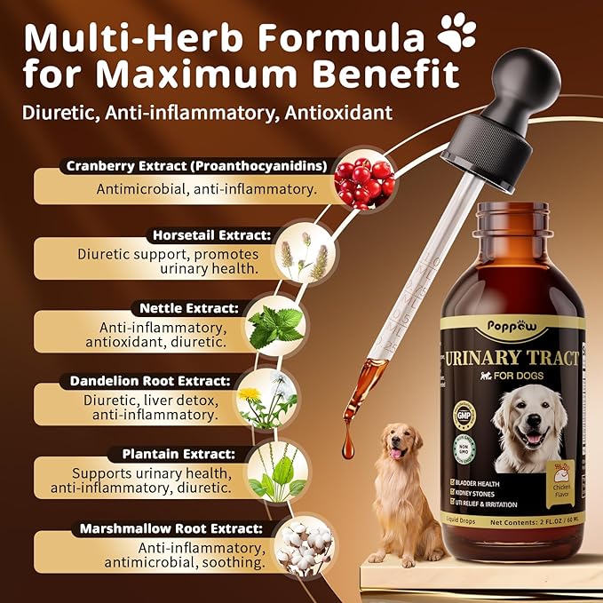 Dog UTI Treatment & Urinary Tract Support – Natural Herbal Drops with High Cranberry Extract, Vitamin B6 for Urine pH Balance, Bladder & Kidney Function, Split Dropper, Chicken Flavor, 2Oz -